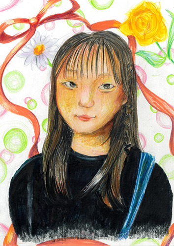| 【どんなアーティストになりたい?】 色を大切にする絵を描きたい。生き生きとした瞳を描きたい。 私の絵を見てくれた人が元気になってくれる様な絵を描いていたい。 人を笑顔にしたい。 |